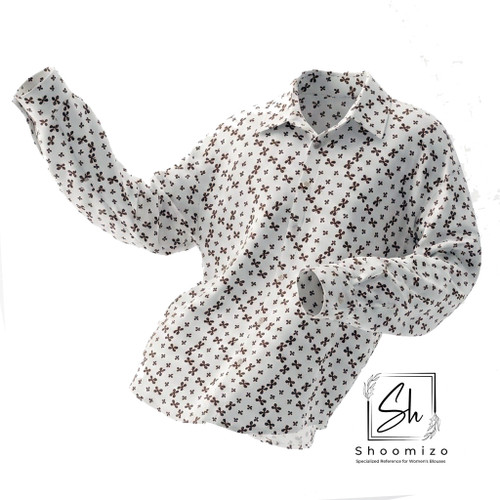 شومیز طرح گل چاپی سفید - کرم
