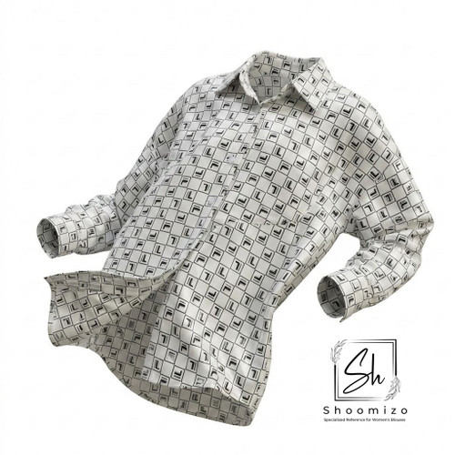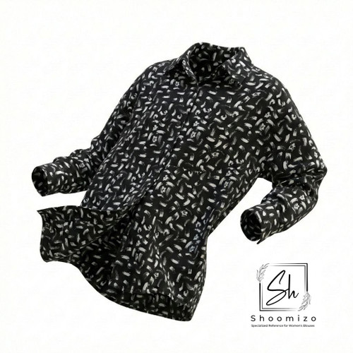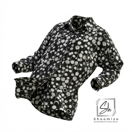 شومیز طرح گل چاپی سفید - مشکی