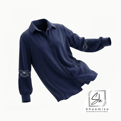 شومیز آزرو آستین پلیسه سورمه ای
